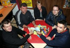 Am 14.03.15 haben wir dann das 1. Muckerturnier gemacht. Es haben 5 Teams teilgenommen. Gerhard und Stefan haben eindeutig gewonnen mit 7 Pobbel vor Christian und Uwe (4 Pobbel), Andreas und Fritzi (3 Pobbel), Jaro und Frank (3 Pobbel) sowie Isa und Petra, die ebenfalls 3 Pobbel hatten und nur haarscharf am 4 Pobbel vorbeigeschrammt waren. Hat unglaublich Spaß gemacht, vielleicht findet sich im nächsten Jahr das ein oder andere weitere Team.